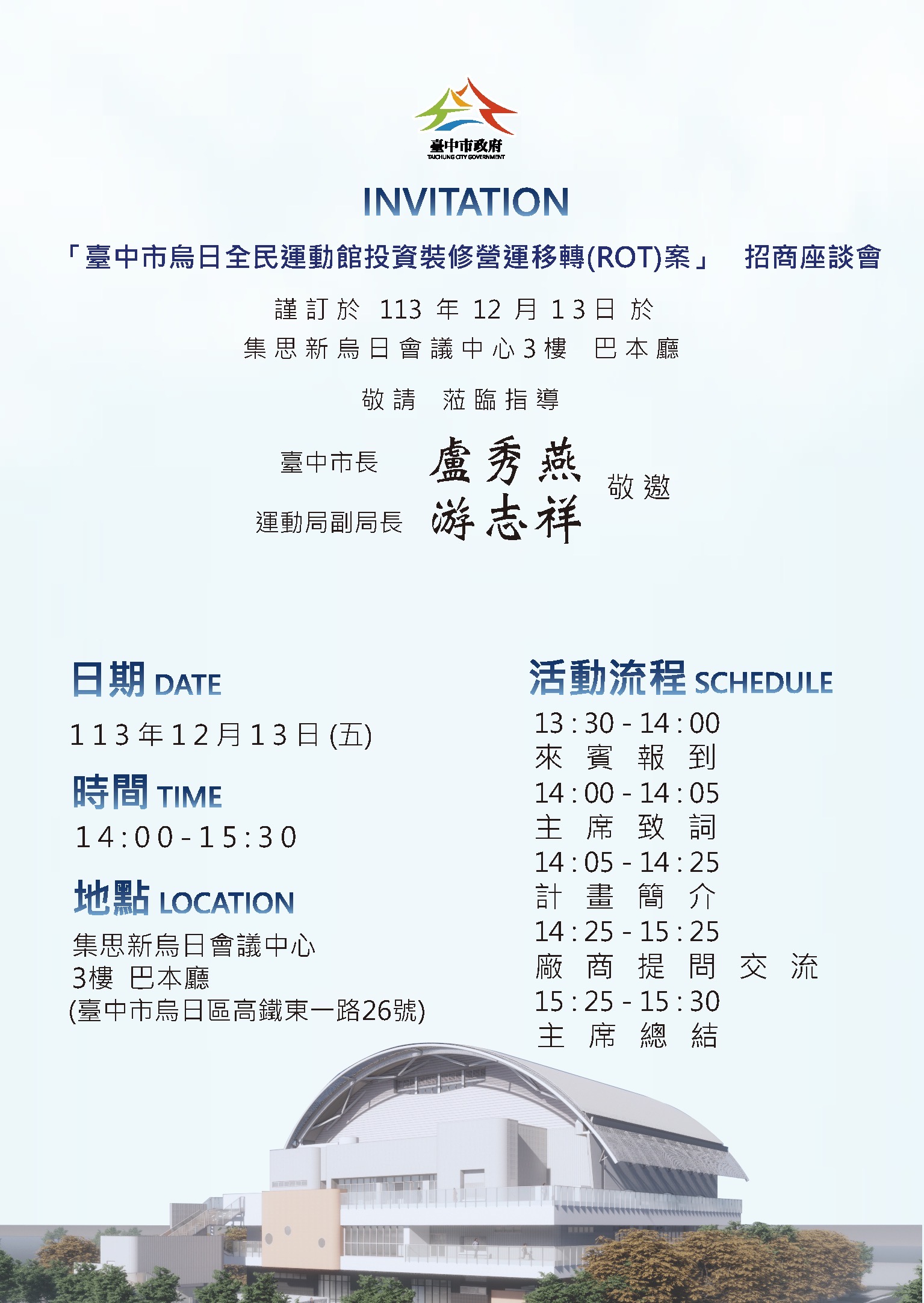 「臺中市烏日全民運動館投資裝修營運移轉(ROT)案」招商座談會